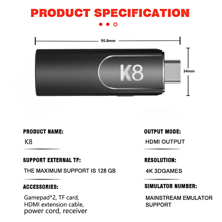 K8 GameStick 3D 64GB Console 2.4G Wireless Controllers 4K 32000+ Video Games Plug and Play