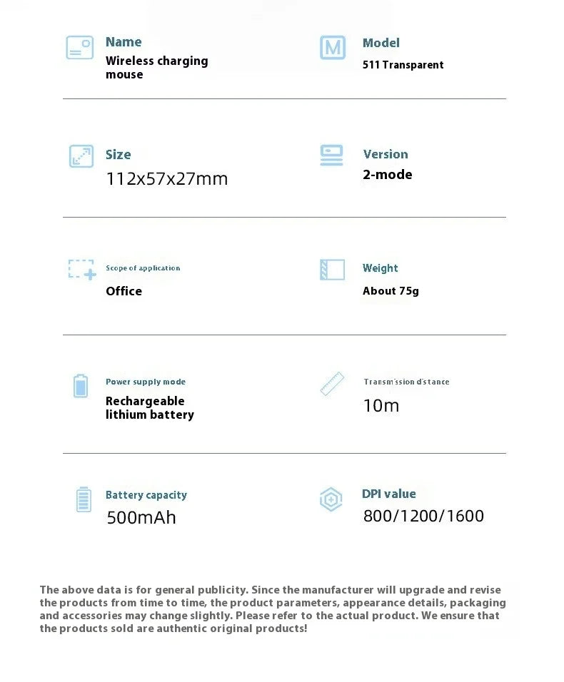 Transparent Rechargeable Mouse Specifications: